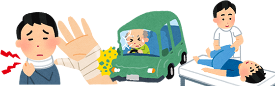 - 交通事故によるむちうちや体の痛みに対して治療が可能であり、早期の社会復帰を目指します。